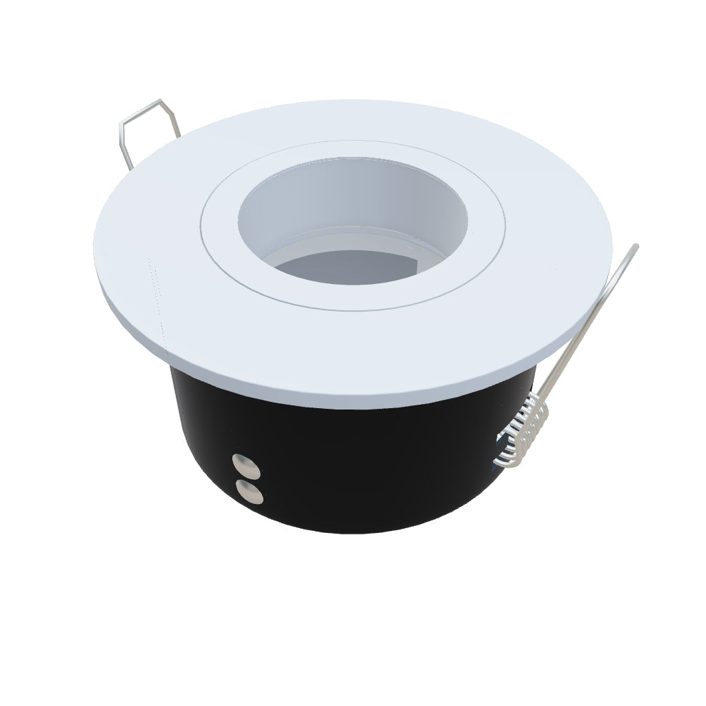 Zápustné koupelnové LED svítidlo určené k zapuštění do sádrokartonového podhledu s možností naklopení pro LED zdroje GU10.