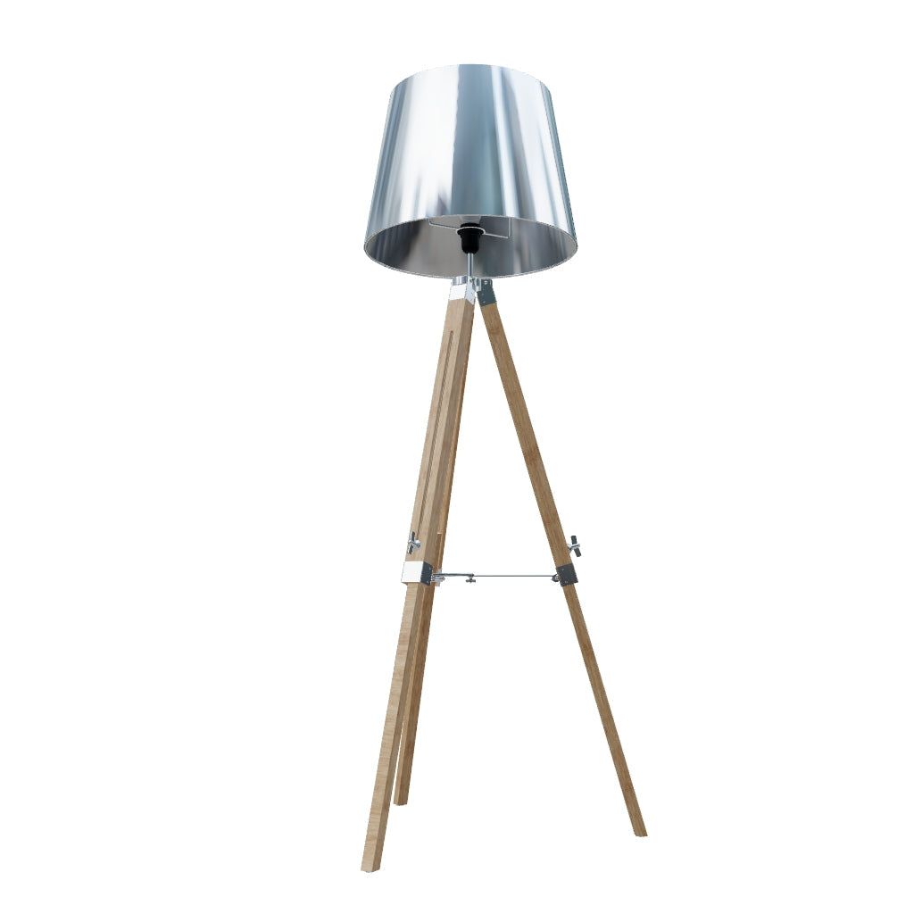 Stojanová lampa se stínidlem z chromované folie. Výškově nastavitelný bambusový podstavec. Vhodné pro LED světelné zdroje se závitem E27.