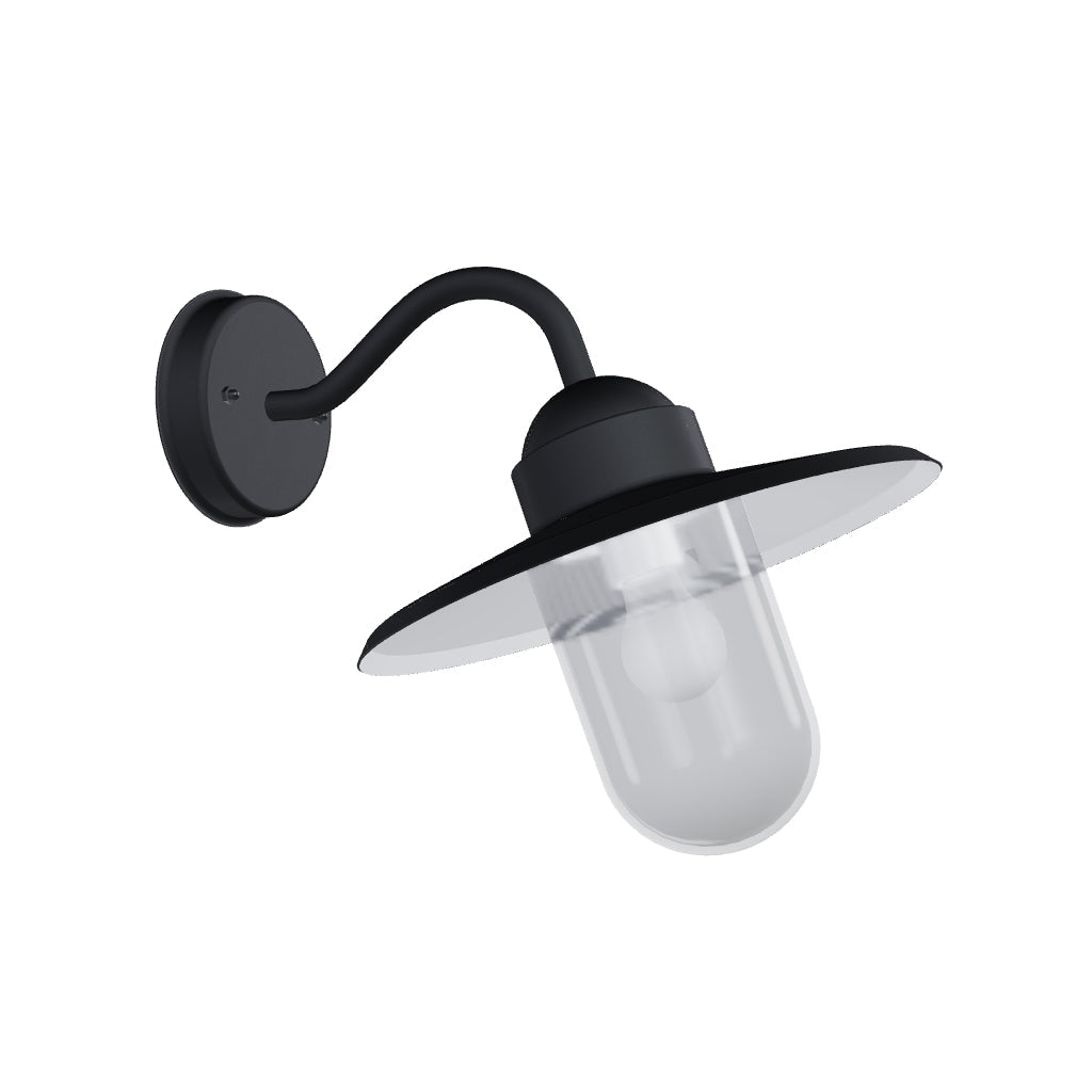 Venkovní nástěnná retro lampa s čirým skleněným stínidlem pro žárovku s paticí E27.