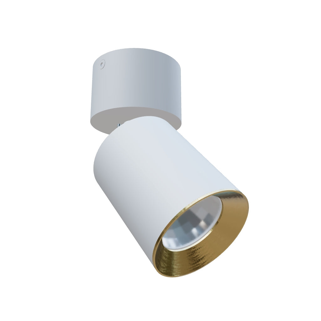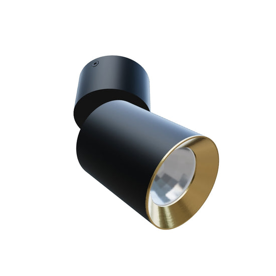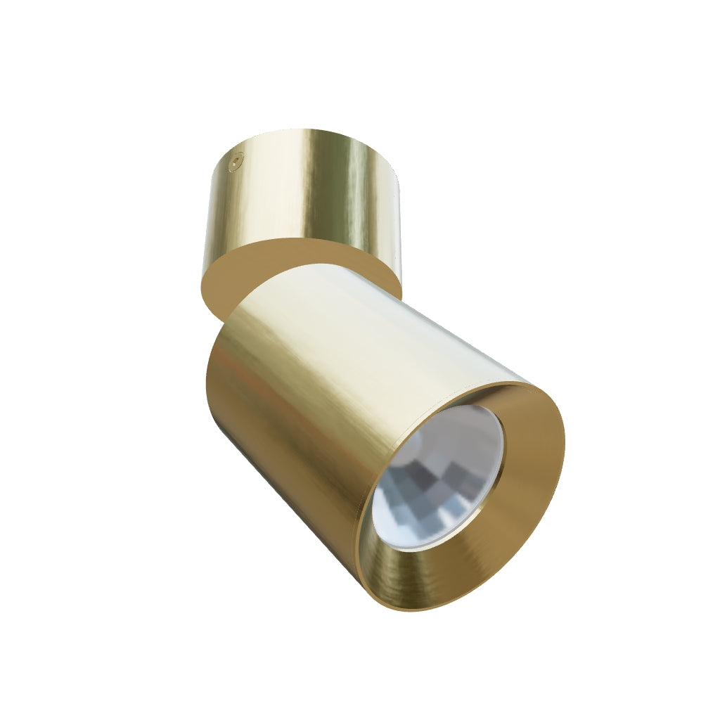 Náklopný stropní válec pro LED žárovku s paticí GU10 včetně kovového dekorativního kroužku v barvě česaná mosaz. Pro možnost barevné změny je možné dokoupit kroužek v černém nebo bílém provedení.