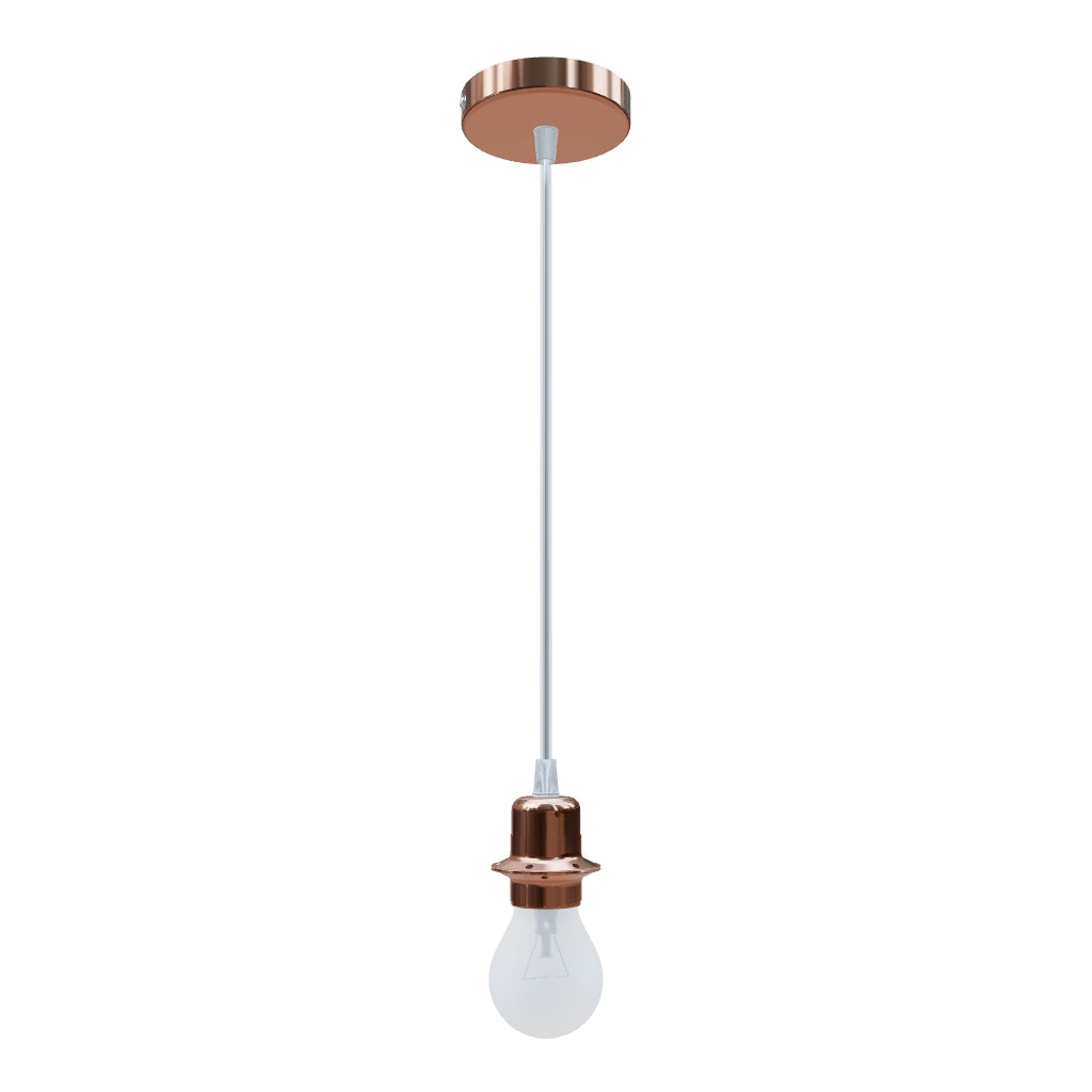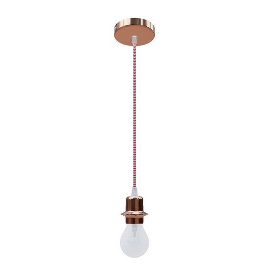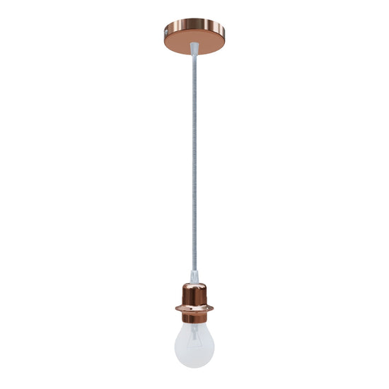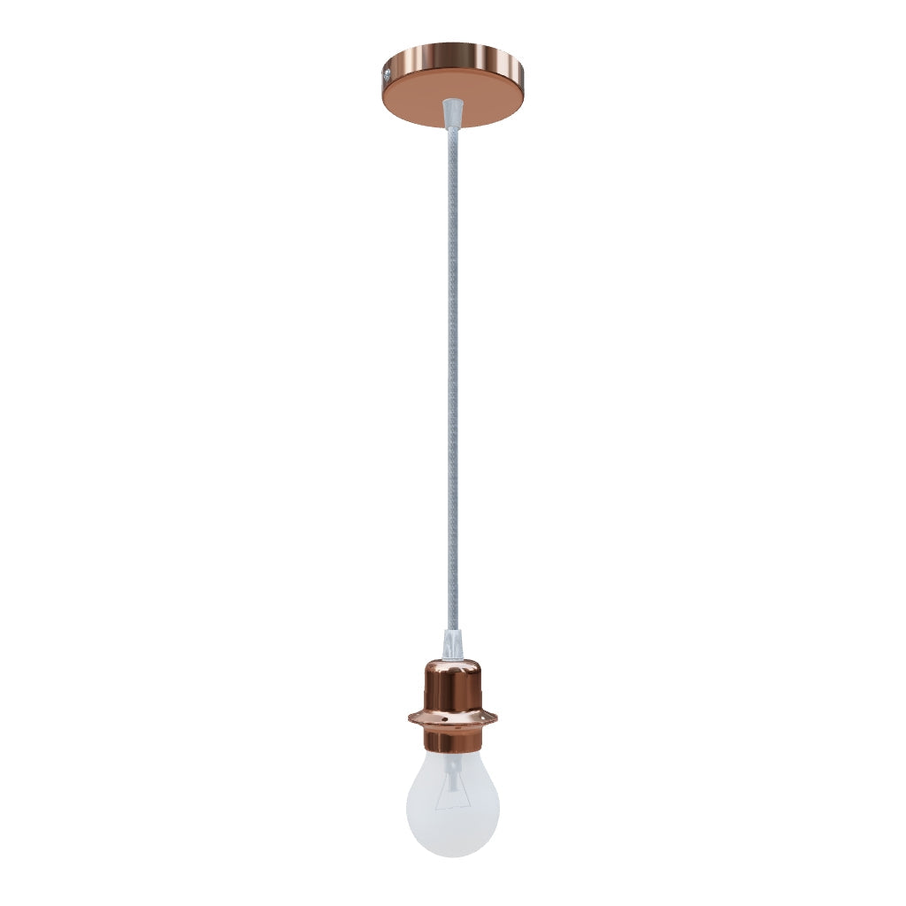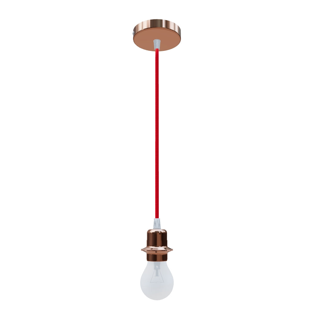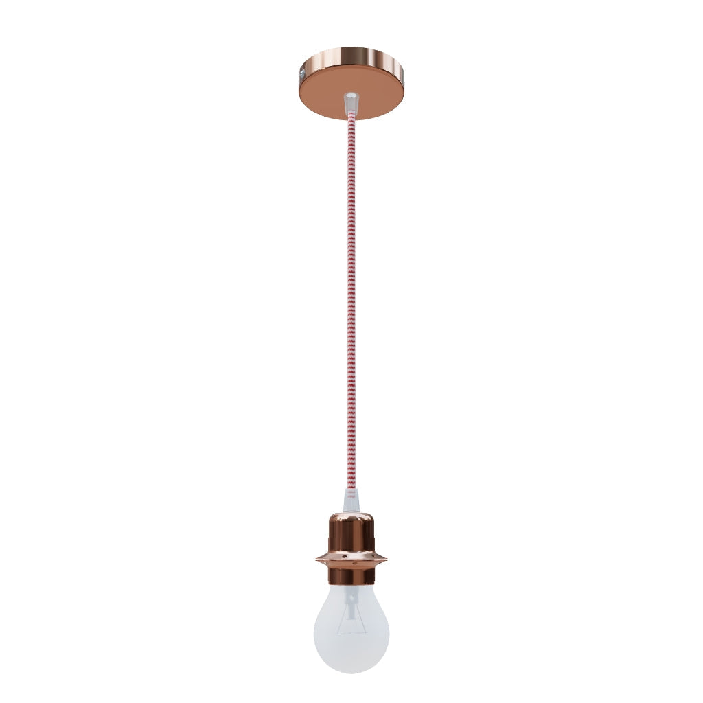Závěsná sada s měděnou kruhovou základnou, textilním kabelem a kovovou paticí E27. Pro samostatné použití nebo k zavěšení lehkých stínidel. Vhodné pro stínidla: ARISTA, DELI, JAKARANDA, DOUBLE 40/30, DOUBLE 55/30, ASPRO 40/30, RON 40/25, RON 55/30, RON 60/19, TEMPO 30/19, TEMPO 50/19.