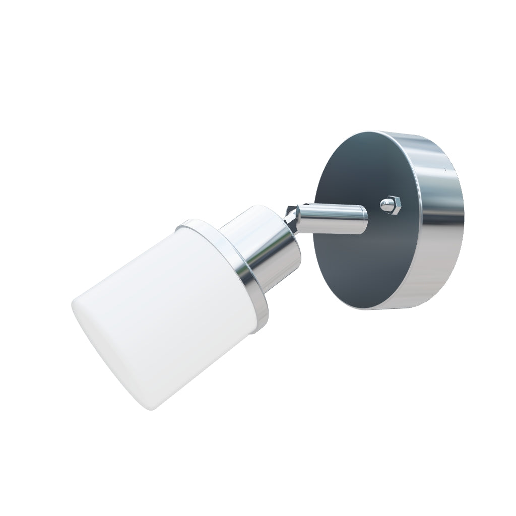Nástěnné nebo stropní svítidlo s opálovým sklem na chromové základně. Vhodné do vlhkého prostředí.