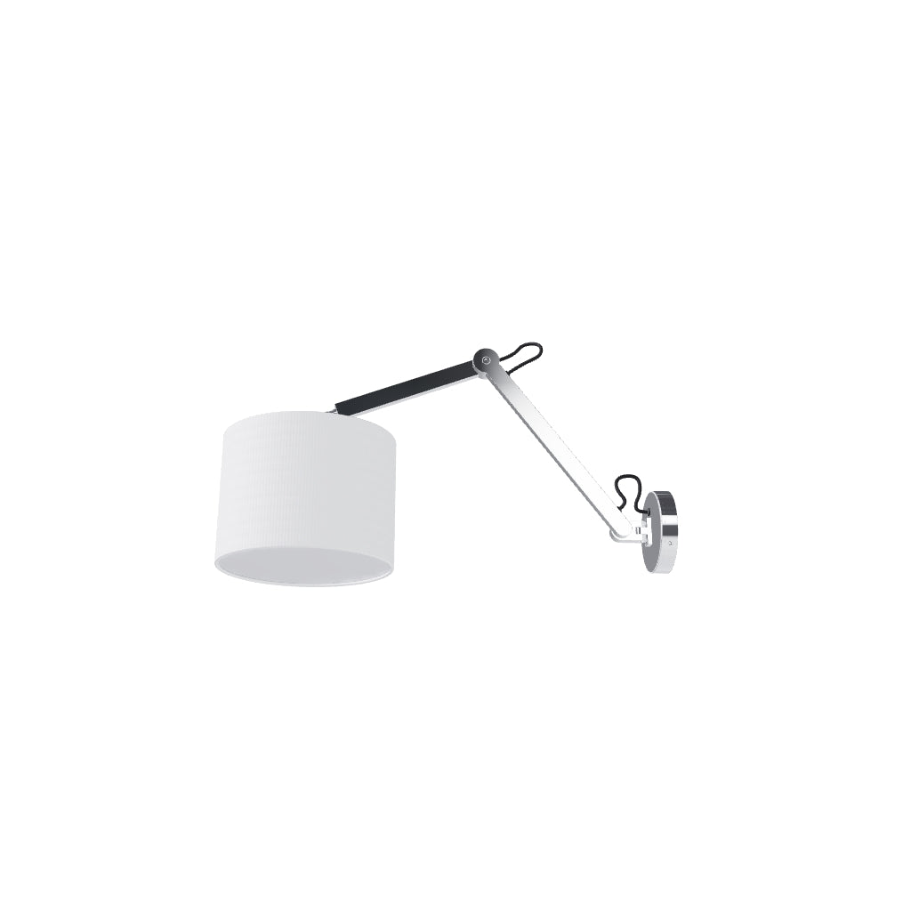 Nástěnná dvojramená lampa s textilním stínidlem.
