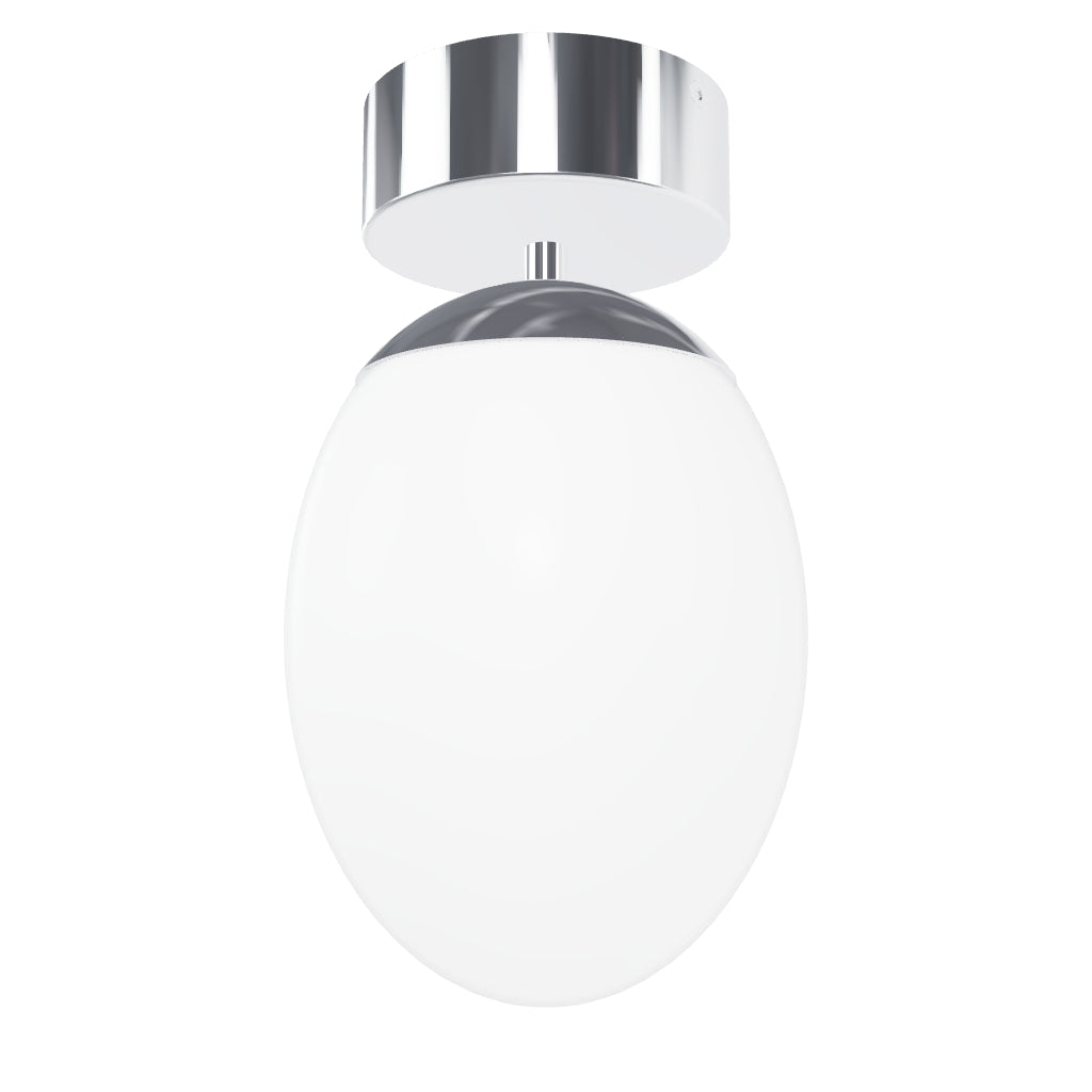 Stropní oválné skleněné svítidlo s chromovou základnou. Vhodné do vlhkého prostředí.