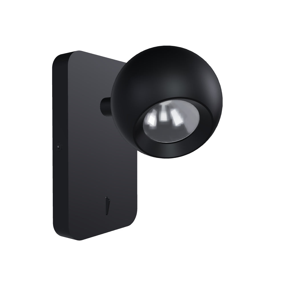 Nástěnné lakované svítidlo s náklopným reflektorem pro světelné zdroje s paticí GU10. Vypínač je umístěn na základně.