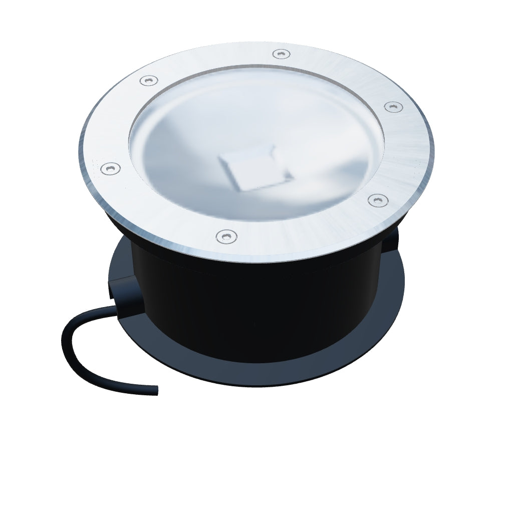 Venkovní zápustné svítidlo do země s vysoce výkonnou LED diodou. Včetně přívodního kabelu o délce jeden metr.